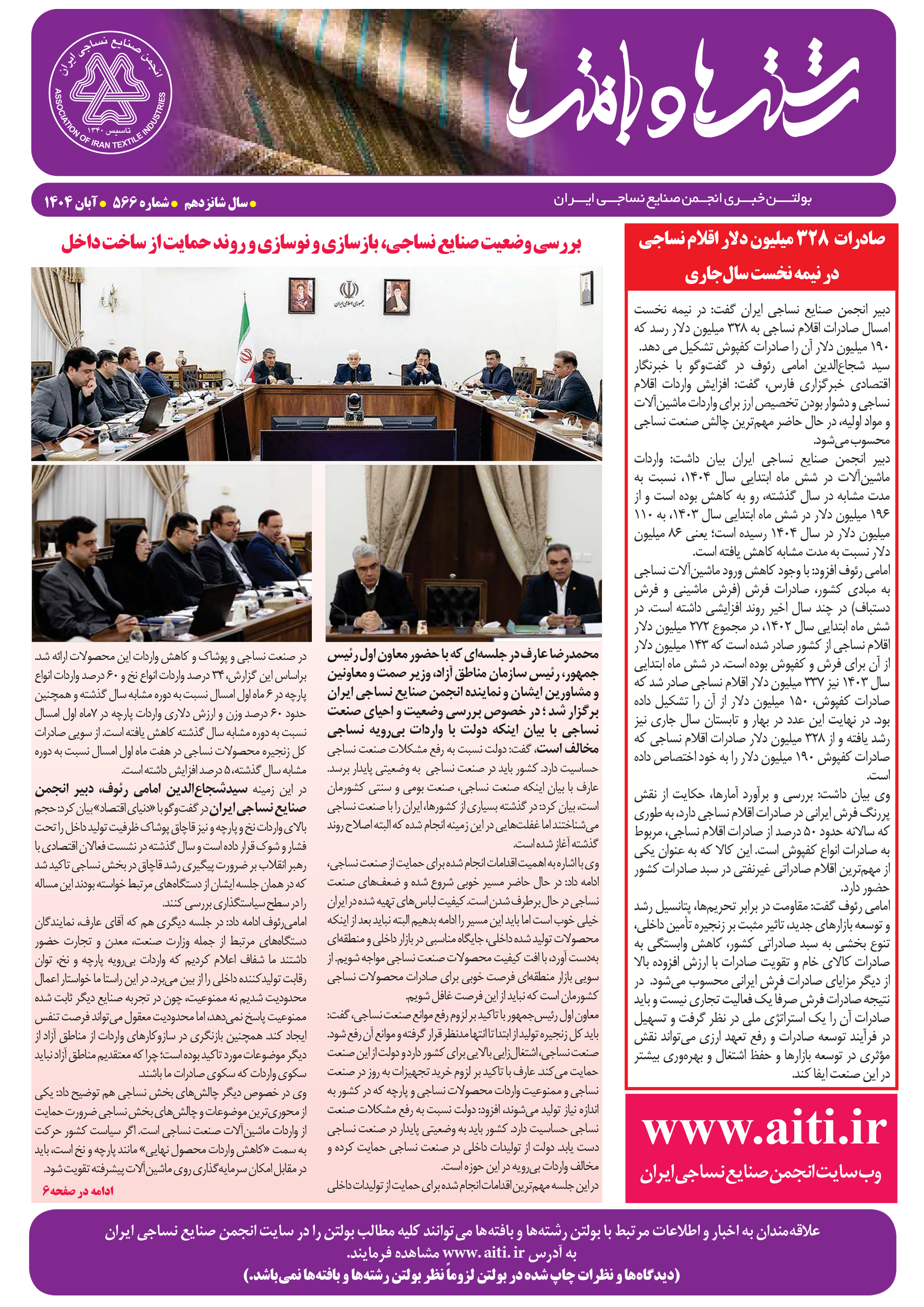 بولتن رشته ها و بافته ها شماره ۵۶۶