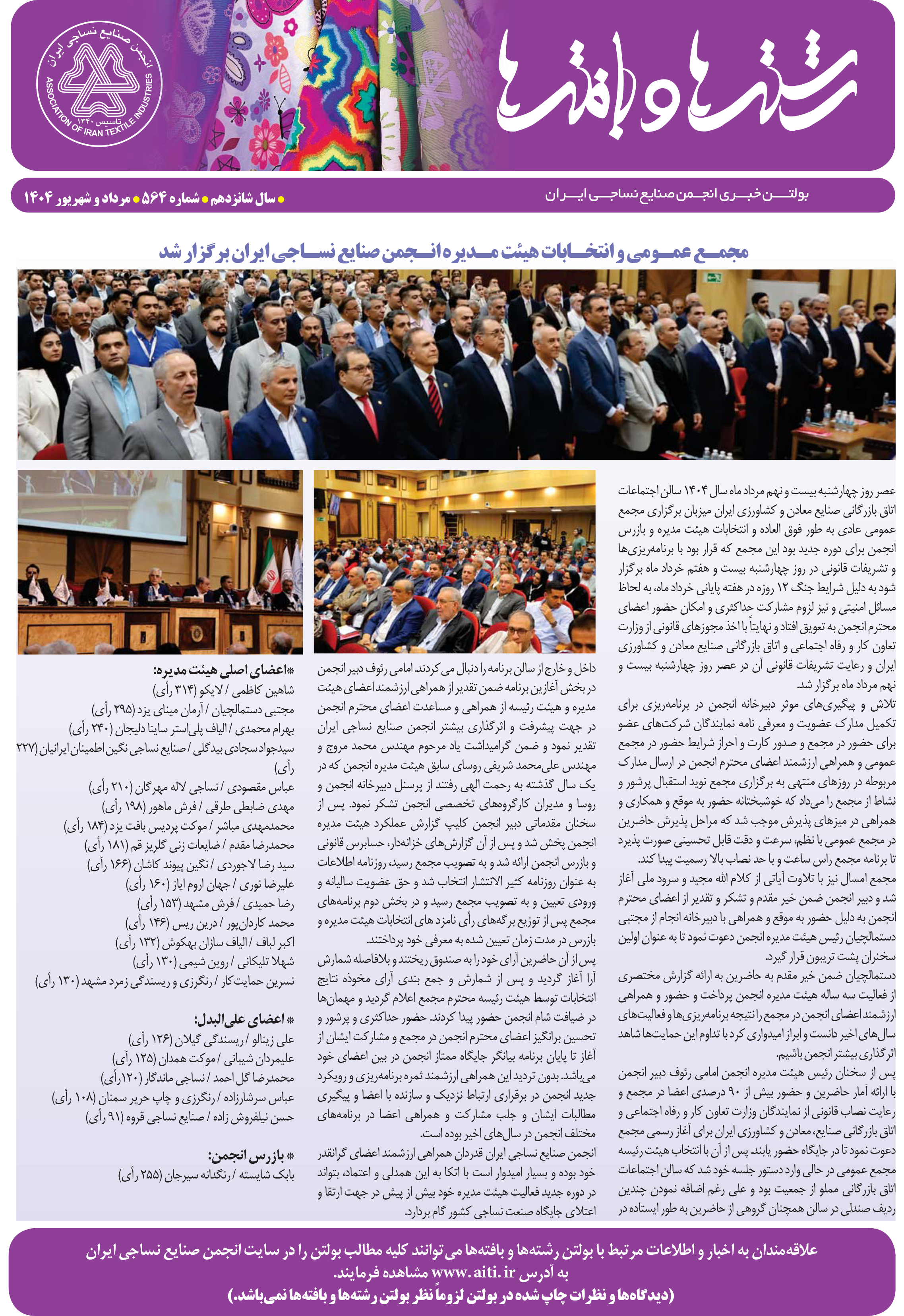 بولتن رشته ها و بافته ها شماره ۵۶۴
