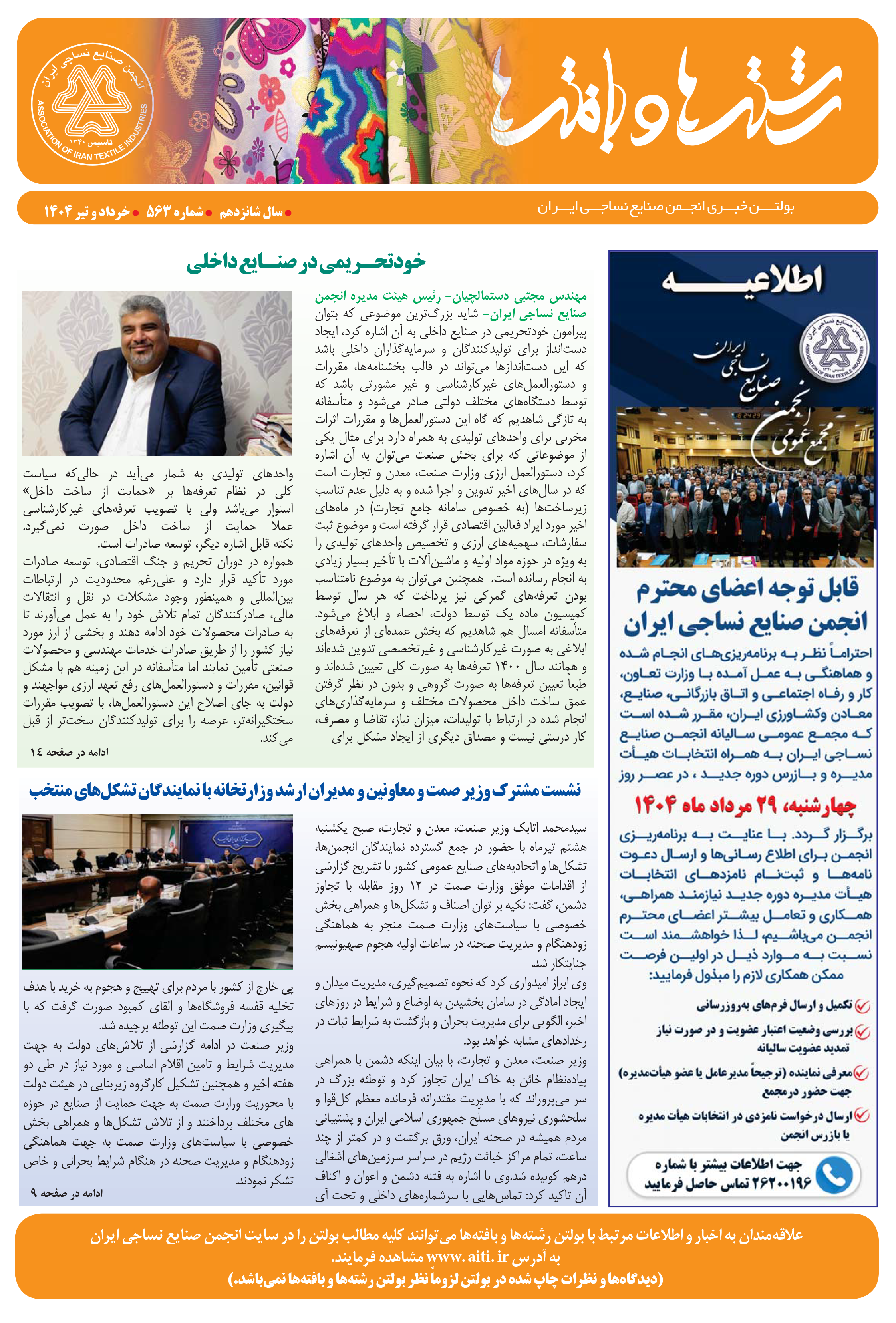 بولتن رشته ها و بافته ها شماره ۵۶۳