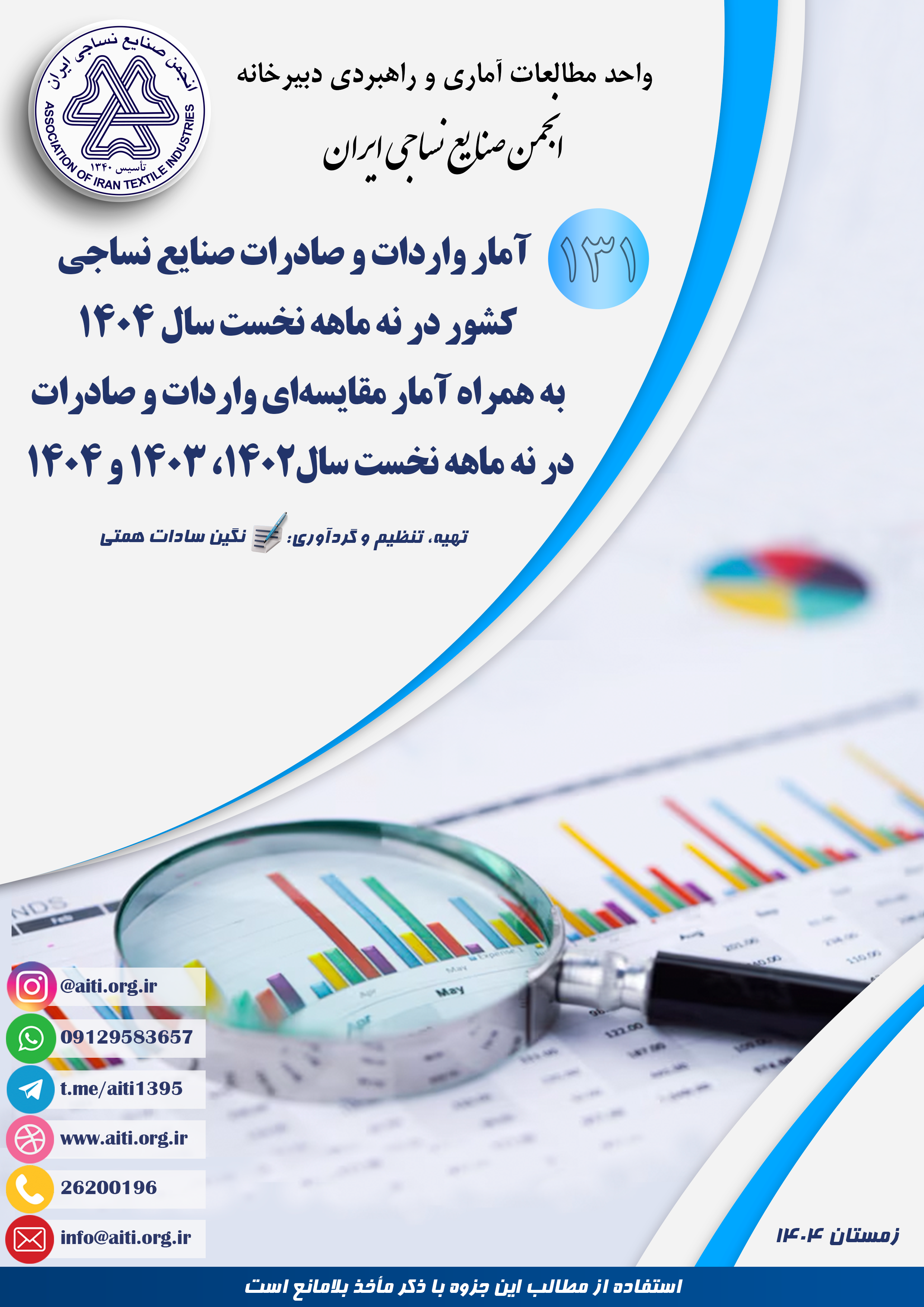 131- آمار واردات و صادرات صنایع نساجی کشور در نه ماهه نخست سال 1404