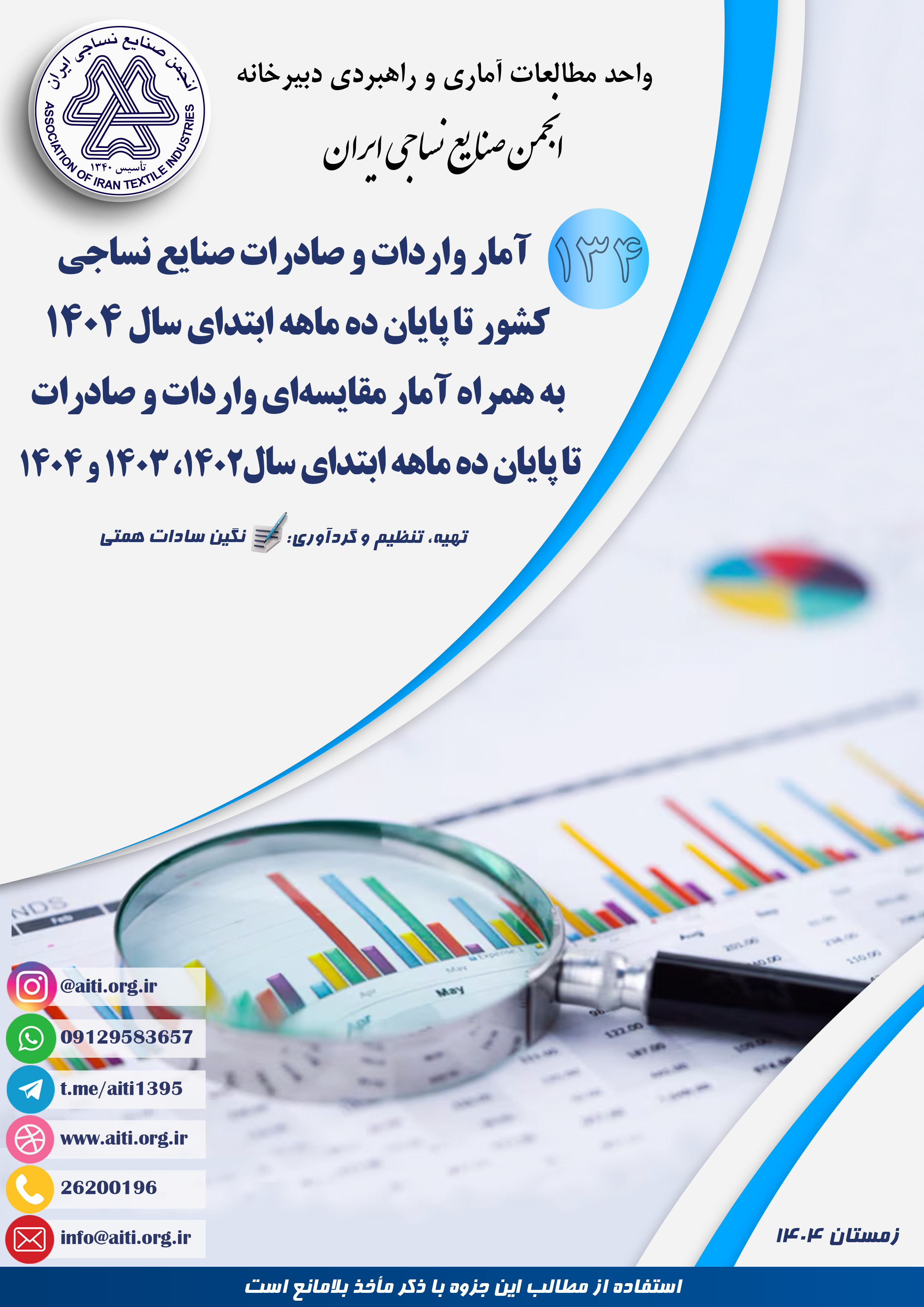 اسفند ۱۴۰۴134- آمار واردات و صادرات صنایع نساجی کشور تا پایان ده ماهه نخست سال 1404